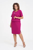 Трикотажное женское платье прямого силуэта, по спинке тесьма -молния.по переду карманы. Рукав со складкой и декоративными пуговицами, на манжете.