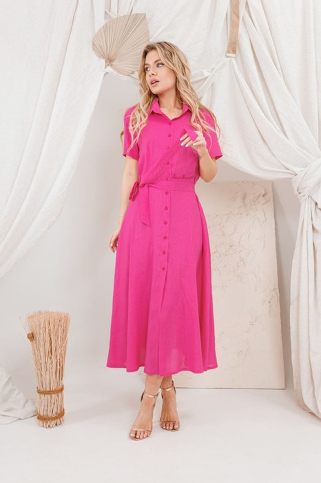 Льняное натуральное  платье с акцентной яркой  вышивкой на талии. Застежка по переду на петли ипуговицы, в боковых швах карманы, пояс сьемный.