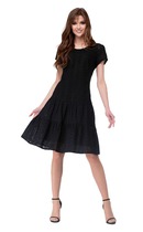 Льняное натуральное  платье современного кроя. Сборка по какеткам и по валану, рубашечный воротник, застежка потайная на петли и пуговицы, в боковых швах карманы.