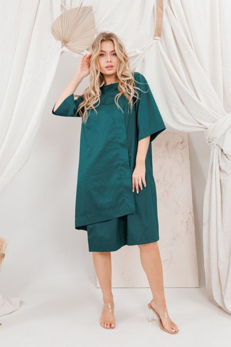 Стильное ассиметричное натуральное платье на потайной  застежке по переду, в боковых швах карманы.