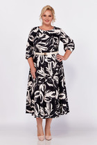 Платье Swallow 778 черный+принт бежевые цветы