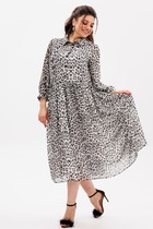 Трикотажное платье средней длины, с красивой горловинкой - стойкой. Особенно красивый трикотаж - немного меланжевый и имеет еле-заметную тончайшую люриксовую ниточку, При чем, блеск настолько мягко проигрывается, что очень мало заметен, но в то же сремя придает богатства и эффектого вида изделию. По этому платье прекрасно подойдет для любого случая в жизни.