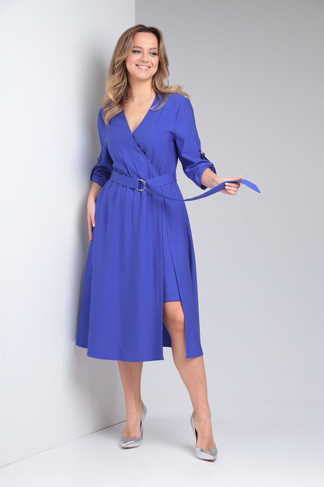 Элегантное женское платье из лёгкой струящейся ткани,отрезное по линии талии и присобрано на резинку.По переду изделия регулируемый запах горловины на потайную кнопку. Ниже талии по переду двойная юбка ,это придаёт изделию особую изюминку.В боковыхшвах действующие карманы. Рукав регулируемый на полукольца. Широкий пояс в комплекте.