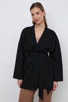 Элегантное женское платье из лёгкой струящейся ткани,отрезное по линии талии и присобрано на резинку.По переду изделия регулируемый запах горловины на потайную кнопку. Ниже талии по переду двойная юбка ,это придаёт изделию особую изюминку.В боковыхшвах действующие карманы. Рукав регулируемый на полукольца. Широкий пояс в комплекте.