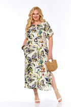Натурально платье с дизайнерской вышивкой по переду.  По спинке средний шов, мония и разрез.