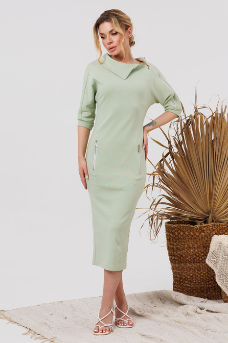 Натуральный хлопковый трикотаж, который очень приятно и комфортно к телу. Ассиметрично сделана молния на рукаве переходя в воротник. Карманы на молнии спереди платья.