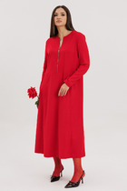Платье женское полуприлегающего силуэта длинной за колено из легкой плательной ткани. Спинка платья цельнокроеная в области лопаток декоративные подрезы, так же обработаны талиевые выточки для лучшей посадки изделия по фигуре. По полочке центральная застежка на цельнокроеных планках, застегивающихся на петли и пуговицы. Воротник – стойка. Рукава втачные, длинные по низу притачная манжета, застегивающаяся на петлю и пуговицу. Для удобства в боковых швах обработаны карманы. Платье дополнено съёмным поясом из основной ткани.
