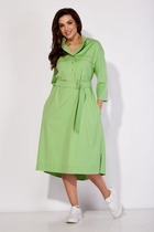 Полочка платья с центральной застежкой на молнию и вертикальными рельефами. Горловина V-образной формы с отложным воротником. Спинка с вертикальными рельефами. В области талии от рельефа спинки до рельефа полки обработан