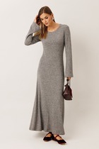 Платье А-силуэта, выполнено из ткани в полоску.