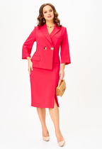 Полочка платья с центральным швом, в верхней части которого выполнена оригинальная застежка на петли и пуговицы, в нижней части центрального шва полочки обработана шлица. Полочка с нагрудными вытачками. Горловина круглой формы с воротником рубашечного типа. Спинка со средним швом. Рукав втачной, одношовный, длинный, по низу со складкой и притачной манжетой. Манжета с разрезом по низу и декором из пуговиц.