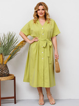 Элегантный V-образный вырез горловины подчеркивает линию шеи, добавляя образу женственности и утонченности. Удобная планка с застежкой на петли и пуговицы придает платью стильный акцент и позволяет легко регулировать посадку.