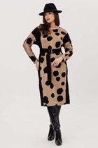 В этом платье словно воплотилась сама нежность — струящийся полуприлегающий силуэт мягко обволакивает фигуру, подчеркивая изящество линий. Круглый вырез горловины, скромный и элегантный, обрамляет лицо, даря ощущение легкости и чистоты. Короткий рукав-реглан, словно вторящий естественным изгибам плеч, добавляет образу воздушности.