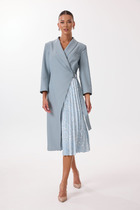 Вечернее платье с прозрачными рукавами станет идеальным выбором для торжества или особого мероприятия. Платье выполнено из эластичного трикотажа "масла". Свободное облегание и длина чуть ниже колена подчеркнут вашу элегантность и женственность, а широкие рукава из шифона добавят образу легкость и изящество.