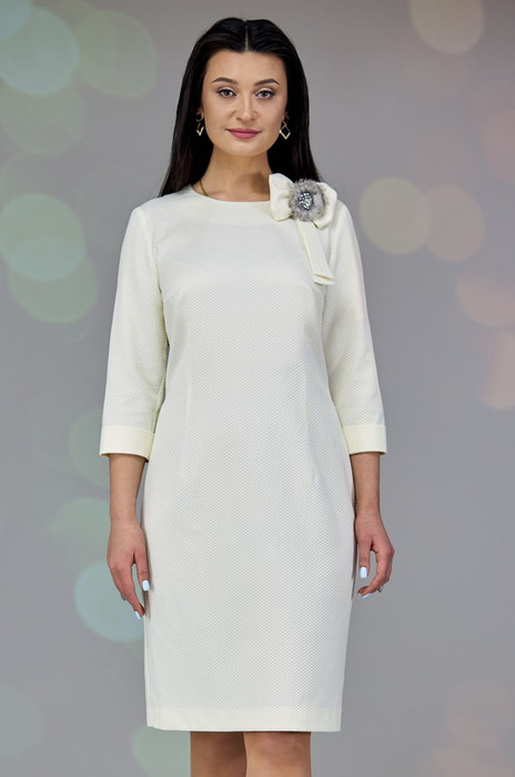 В гардеробе каждой женщины должно быть светлое платье. Оденьте платье на работу, на праздник, на свадьбу к подружке, платье невесты, офис, ресторан, свидание, Новый год. Использую аксессуары, меняйте свой образ с повседневного на вечерний . Примерив наше платье - Вы не захотите его снимать. Светлое платье очень нараяное, сексуальное. Белая плательная ткань требует особого подхода в выборе белья, идеально - бежевое белье. Платье прямое, прилегающего силуэта. Перед платья с нагрудными вытачками. Спинка со средним швом , в котором расположены шлица и застежка на потайную молнию. Рукав прямой, длиной 3/4 с небольшой отложной манжетой. К платью прилагается стильное украшение в виде банта. Длина платья 98 см