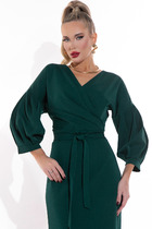 Платье полуприлегающего силуэта с фигурным отрезом выполнено из нежно-розового полотна с принтом белый горох. Характеристики: отрезное, отрез фигурный, горловина V образный вырез, рукав втачной струящийся, низ свободного кроя на подкладке, в боковом шве - потайная молния. Длина платья 127 см, длина 34.