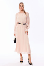 Платье-макси. Выполнено из трикотажного полотна. Прямой крой. Воротник-поло, отложной. Застёжка пуговички. Рукав втачной. Длина рукава от линии втачивания 22 см. Длина спинки 137 см