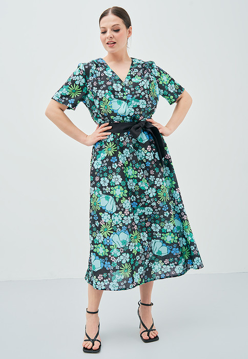 Сколько бы новых узоров не появлялось, а платья с цветами остаются модными, желанными, актуальными, ведь цветы вечны и незаменимы, как и сама природа. Жизнерадостный, женственный и красочный образ создаст платье ArtRibbon с актуальным цветочным принтом. Платье А-силуэта, горловина V-образной формы, рукав короткий втачного покроя. По талии эластичная тесьма. Изделие без подкладки. Возможно отличие фотографии по оттенку, связанное с различной цветопередачей монитора.