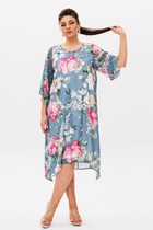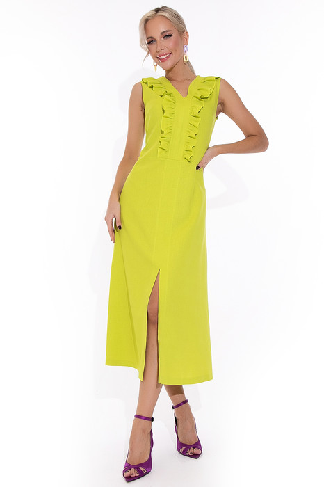 Платье приталенного силуэта, отрезное по талии , по спинке замок. V-образная линия горловины украшена рюшой, которая придает нотку романтизма. Длины : ( 44-52 р- 121 см).