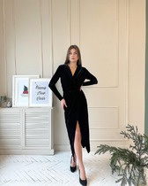 Платье велюровое черное миди.
