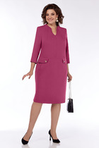 Женское платье полуприлегающего силуэта выполнено из однотонной плательно-костюмной ткани. Перед с подрезам ниже линии талии.Верхняя часть переда со средним швом и нагрудными вытачками из горловины.Нижняя часть переда с вертикальными карманами с листочками и клапанами с декоративными пуговицами. Спинка со средним швом и вытачками из горловины. Рукава втачные двухшовные длиной 3/4. Горловина с цельнокроеной стойкой и каплей по переду. Низ платья фигурный с разрезами по бокам.