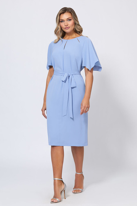 Элегантное платье с красивым декольте с мерцающими кристаллами придётся по душе ценителям нежного и женственного дизайна. А также дополнено интересными рукавами-крылышками, придающими романтичное настроение. В среднем шве спинки обработаны застёжка на навесную петлю-пуговицу и шлица. Модель выполнили из приятной немнущейся ткани, красиво струящейся во время носки. Прямой крой позволяет носить изделие как свободным, так и подчеркнув талию поясом-завязкой. Платье украсит любое событие — от семейного торжества до романтического вечера, а его уникальный дизайн всегда будет выделять его владелицу среди остальных.