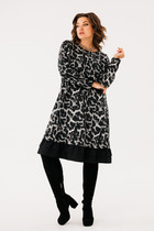 Передняя и задняя часть платья присборена, что визуально моделирует фигуру, делая акцент на талии и удлиняет линию ноги.
