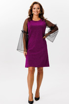 Платье женское свободного силуэта,выполнено из шифона, с цельнокройным рукавом ,на трикотажной подкладке,отрезное по линии талии,полочка переда украшена нашивной аппликацией.