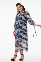 Платье женское длинное, А - образного силуэта, рукав втачной с отложным манжетом, вырез  V-образный по полочке и спинке, в боковых швах карманы.