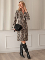 Флавия – элегантное платье с имитацией жакета. Благодаря изящному сочетанию разных тканей верха и юбки с принтом в мелкий "горошек", отлично скрываются недостатки фигуры. Баска визуально создает силуэт “песочные часы”. Кант в рельефе стройнит. А потайная “молния” спереди по середине сделает ваш образ многогранным, так как позволяет с легкостью менять вырез ворота. Будьте загадочной и сексуальной вместе с “Белловера”! Длина платья: 46 размер – 100 см, 48 размер – 101 см, 50 размер – 102 см, 52 размер — 104 см, 54 размер – 105 см, 56 размер – 106 см.
