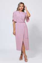 06.04 Vilatte Эластичное платье тонкой жаккардовой вязки D32.101 пудровый