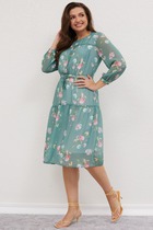 Тиньяле – платье приталенное из однотонной плательной ткани. Вырез горловины V-образный. Рукава 3/4, втачные, оторочены манжетами. На юбке декоративные встречные складки. Пояс в комплекте. На спинке – замок. Будьте яркой и стильной вместе с "