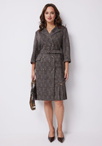 Элегантное женское платье, прилегающего силуэта: по переду и спинке вытачки по талии. Горловина круглая. Застежка на молнию в центральном шве спинки. Рукава втачные, двухшовные, расширенные к низу, в переднем шве, по низу, разрез. Платье без подкладки