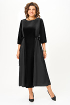 Элегантное женское платье выполнено из хлопковой ткани. Платье полуприлегающего силуэта с отрезной линией талии. Лиф выполнен в виде отлетной детали по низу. Горловина круглая, по линии талии кулиса с декоративным шнуром. По юбке в боковых швах карманы, понизу небольшие разрезы. Рукава втачные, 3/4. Платье без подкладки.