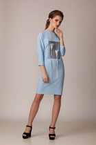 Элегантное женское платье из однотонной плательной ткани. Платье «А» образного силуэта с круглой горловиной оформленной стойкой, украшением служит съемный бант. Платье с фигурной проймой, рукав расширенный, со стойкой по окату и низу. Низ рукава оформлен широким манжетом с декоративными пуговицами. Платье без подкладки.