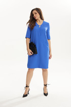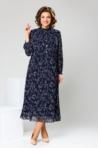 Платье полуприлигающего силуэта с центральной застежкой на кнопки. По переду в верхней части лифа накладные карманы с клапаном и патой переходящей в шлевки на талии, горловина оформлена рубашечным воротником на стойке. Спинка задекорирована нашивкой и шлевкой с кнопкой. Рукава втачные, одношовные.