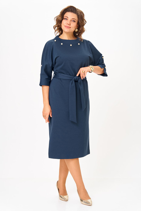 Платье с декоративным поясом из основной ткани и шлевками в боковых швах. Платье без подкладки.