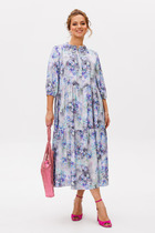 Нарядное платье силуэта трапеции, идеально подчеркнёт преимущество Вашей фигуры. Лаконичный крой ,платье с отрезным воланом. Акцент сделан на горловину, выполнена капля и завязывающийся бант. Рукав за локоть по низу выполнена сборка. Длина платья - 104 см, длина рукава - 48 см.