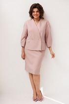 Платье длинное с втачным коротким рукавом до локтя визу на притачной манжете. Полочка с центральной застежкой на петли-пуговицы по притачной планке и с карманами в боковых швах. Платье отрезное по линии талии, лиф с талиевой вытачкой, юбка со встречными складками от талии. Спинка с кокеткой и нашивкой на кокетке. Воротник рубашечный отложной на стойке. Платье без подкладки. Съемный пояс из основной ткани на полукольцах.