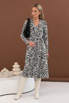 • Элегантный запах: Изящная длина платья (117 см) создает элегантный силуэт, а V-образный вырез, визуально удлиняет шею и подчеркивает линию декольте, придавая образу женственности и изысканности. Широкий, ниспадающий воротник позволяет вам экспериментировать с образами, драпируя его по-разному и создавая разные силуэты. Это ваша возможность выразить свою индивидуальность!