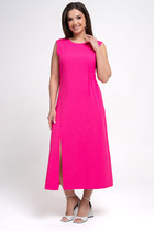 Платье женское из мягкого трикотажного полотна прямого силуэта. Вырез горловины - V образной формы. Рукав отрезной на базе цельнокроеного. По переду и по правому рукаву декоративная вставка из отделочной ткани.