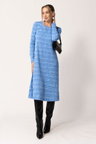 Платье женское полуприлегающего силуэта с запахом и застежкой на пряжку и пояс. Спинка со средним швом и рельефами от проймы до линии бедер. Перед с рельефами от проймы до линии бедер и цельнокроынйм воротником-шаль. Рукав втачной одношовный с вытачкой от низа до локтя. Внутри запах фиксируется на хлястик с петлями и пуговицами в области талии. Фурнитура может отличаться от заявленной на фото.