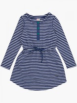 Платье из однотонной кулирки с длинными втачными рукавами. Отрезная юбка по линии бедер со сборкой. Полочка и передняя деталь юбки декорированы принтом.
