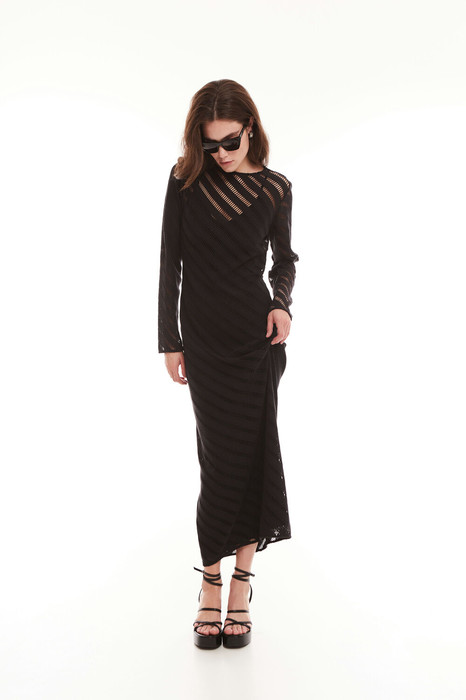 Платье женское, прямого кроя, длиной по щиколотку. Рукав втачной одношовный. Горловина окантована косой бейкой. В комплекте нижние платье на регулируемых бретелях.