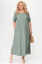 Платье женское, прямого кроя, длиной по щиколотку. Рукав втачной одношовный. Горловина окантована косой бейкой. В комплекте нижние платье на регулируемых бретелях.