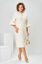 Платье женское, расширенное книзу, длиной макси, без рукавов. Горловина с V-образным вырезом по переду и спинке. Спинка со средним швом. На бретелях съемные банты.