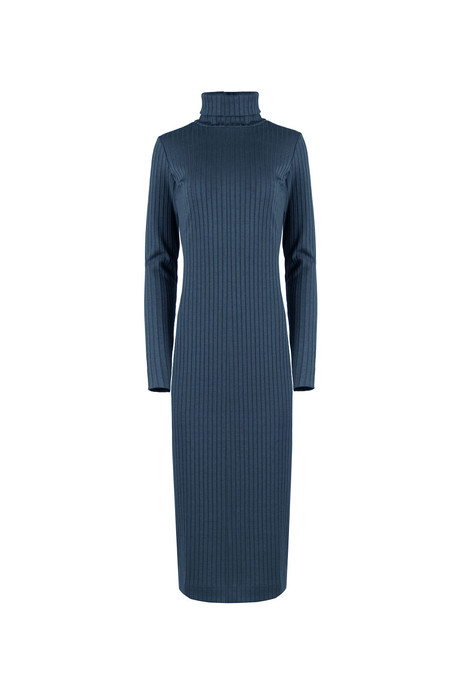 Платье женское трикотажное, прямого силуэта. Рукав втачной, одношовный. Воротник «стойка».