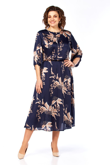Совместные закупки Екатеринбург Женская одежда Платья — Платье Элль стиль 2457 темно-синий/кофе принт