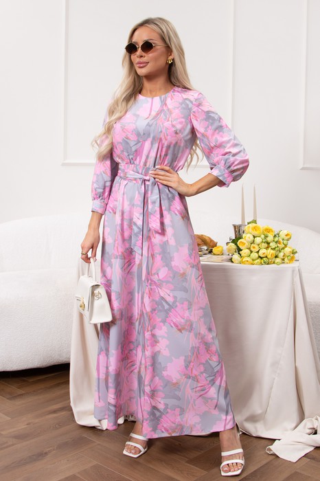 Красивое платье приталенного силуэта. Округлая горловина на внутренней обтачке, по спинке разрез - капелька с застежкой на петлю и пуговицу. Втачной рукав 3/4, оканчивается притачной манжетой. Модель отрезная по линии талии. По талии проложена эластичная резинка, что дополнительно подчеркнет Ваш силуэт. Пояс - кушак из основного материала в комплекте.