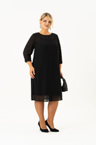 Женственное платье приталенного силуэта выполнено из креп-шифона. Округлая горловина на внутренней обтачке. Длинный втачной рукав присобран на эластичную резинку. Модель отрезная по линии талии, присобрана на резинку. Юбка на подкладке. Низ ровный, без разрезов.