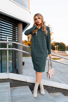 Платье выполнено из плательной ткани. Платье А-образного силуэта, длиной выше линии колена. Горловина округлой формы. Застежка на потайную молнию в среднем шве спинки. По низу платья широкий волан. Платье декорировано рюшами из основной ткани по проймам и горловине переда.